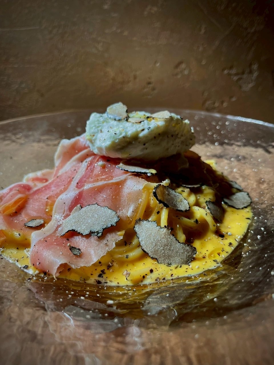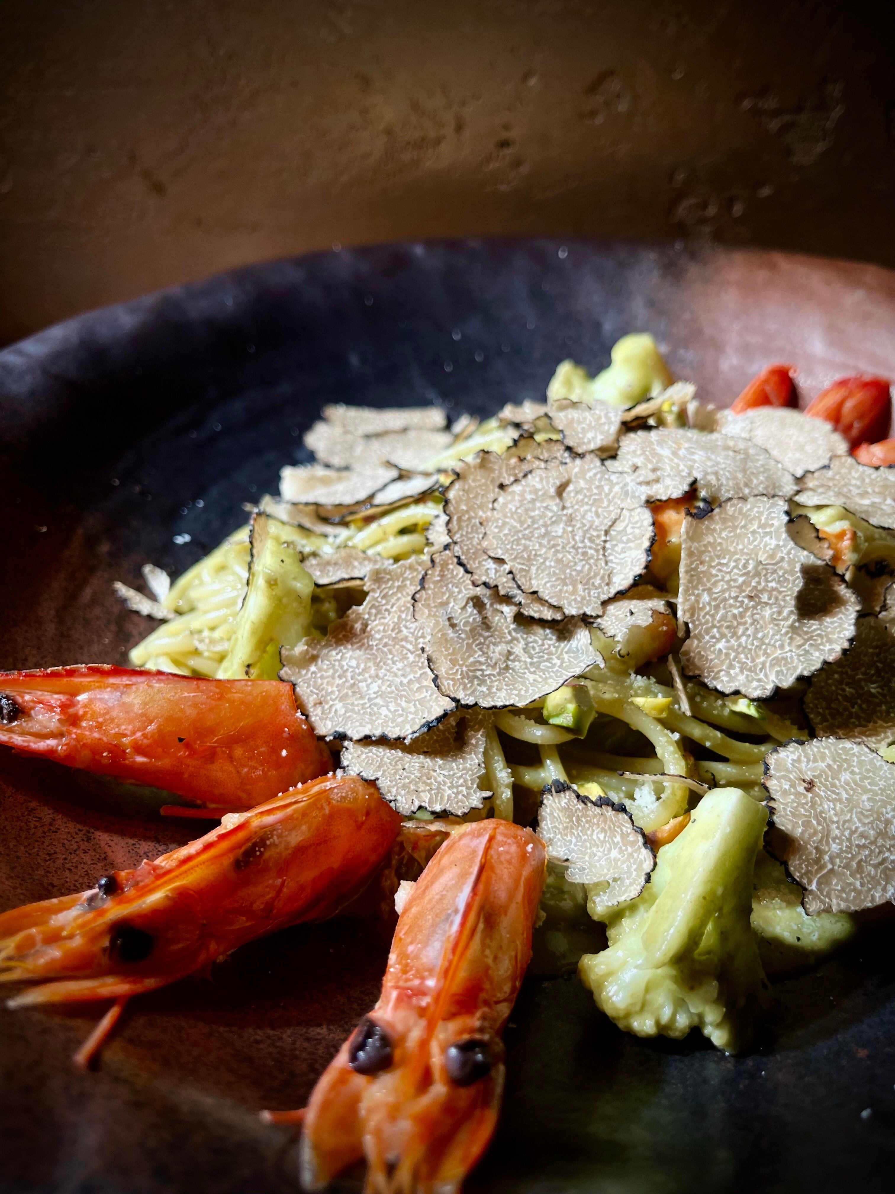 サマートリュフと天使の海老の濃厚ピスタチオソース