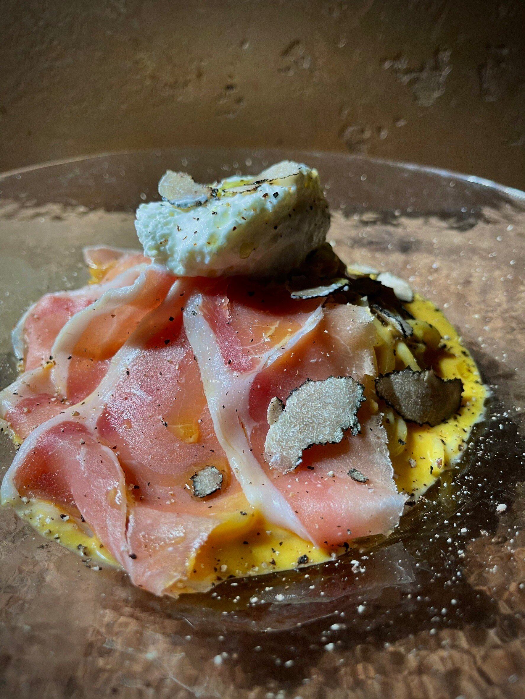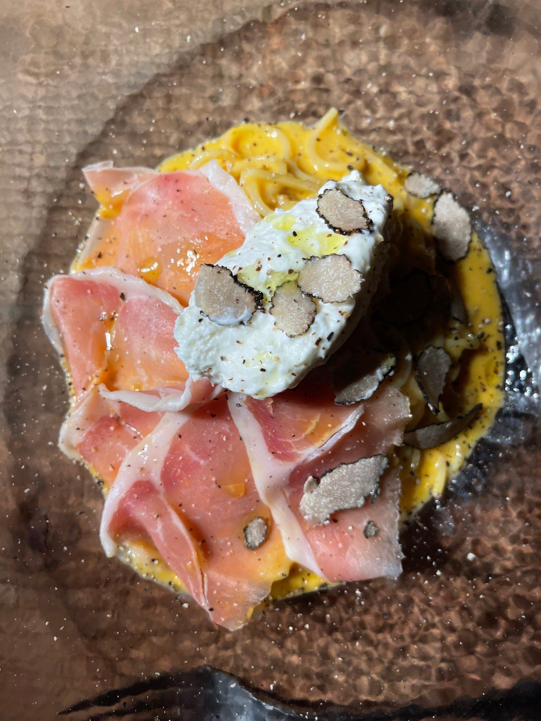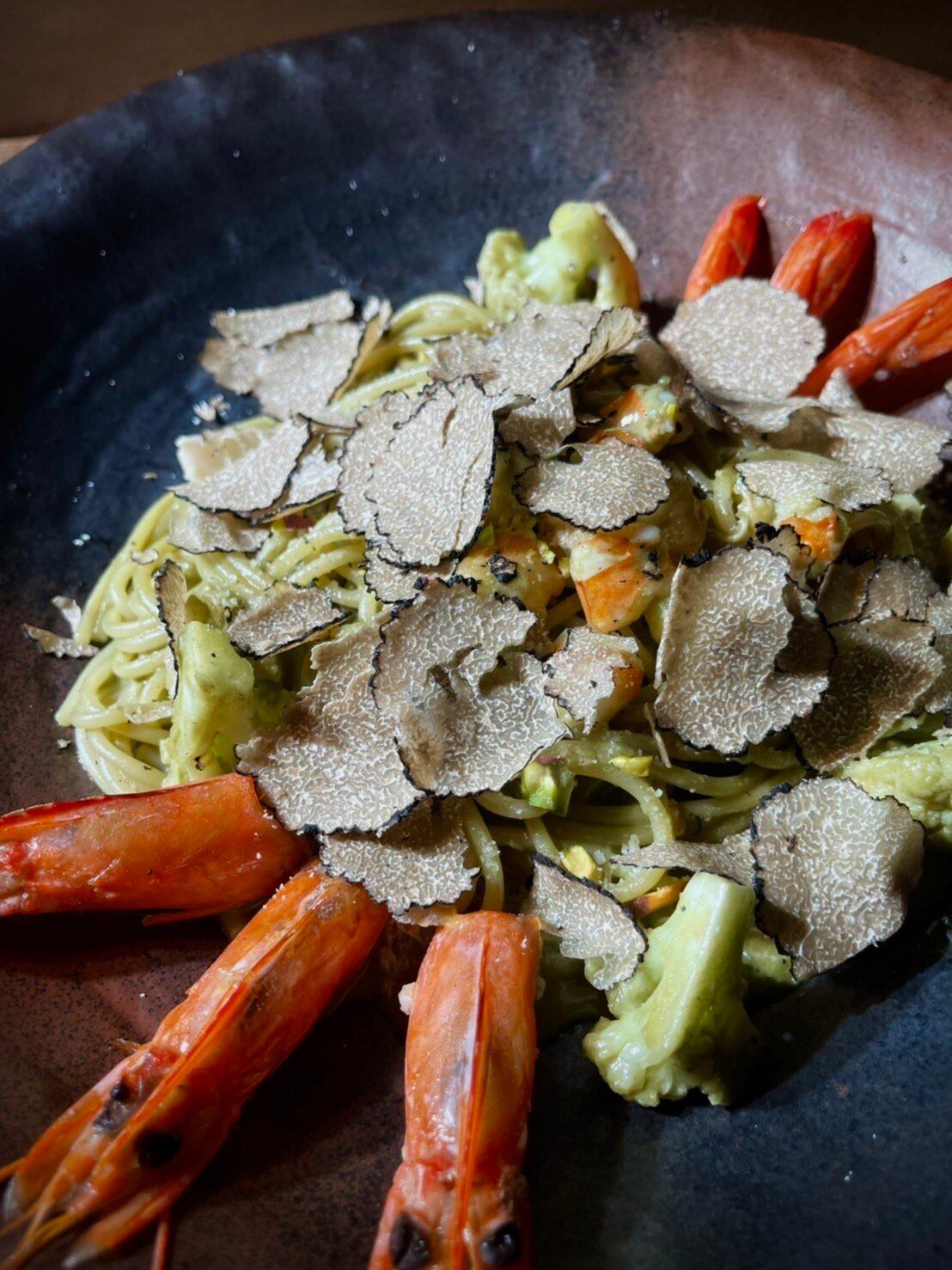 ・サマートリュフと天使の海老の濃厚ピスタチオソース