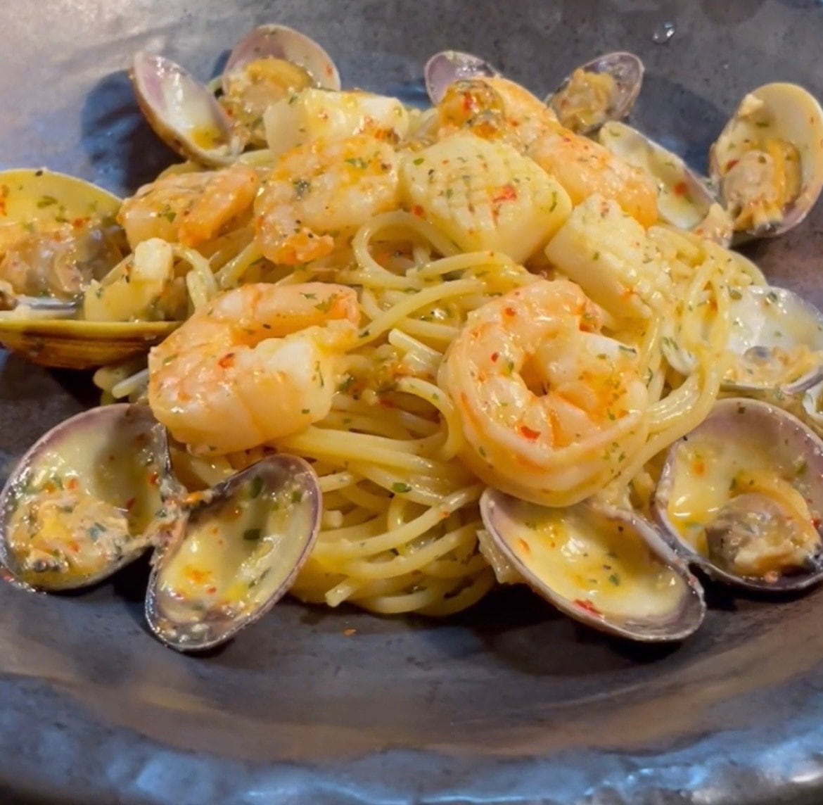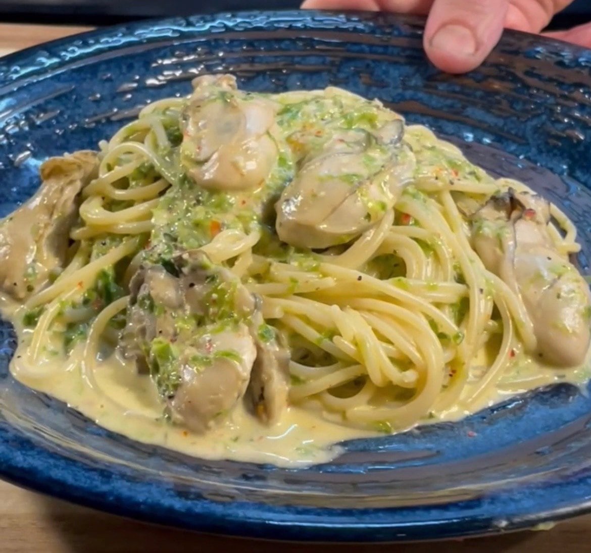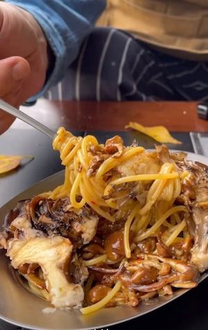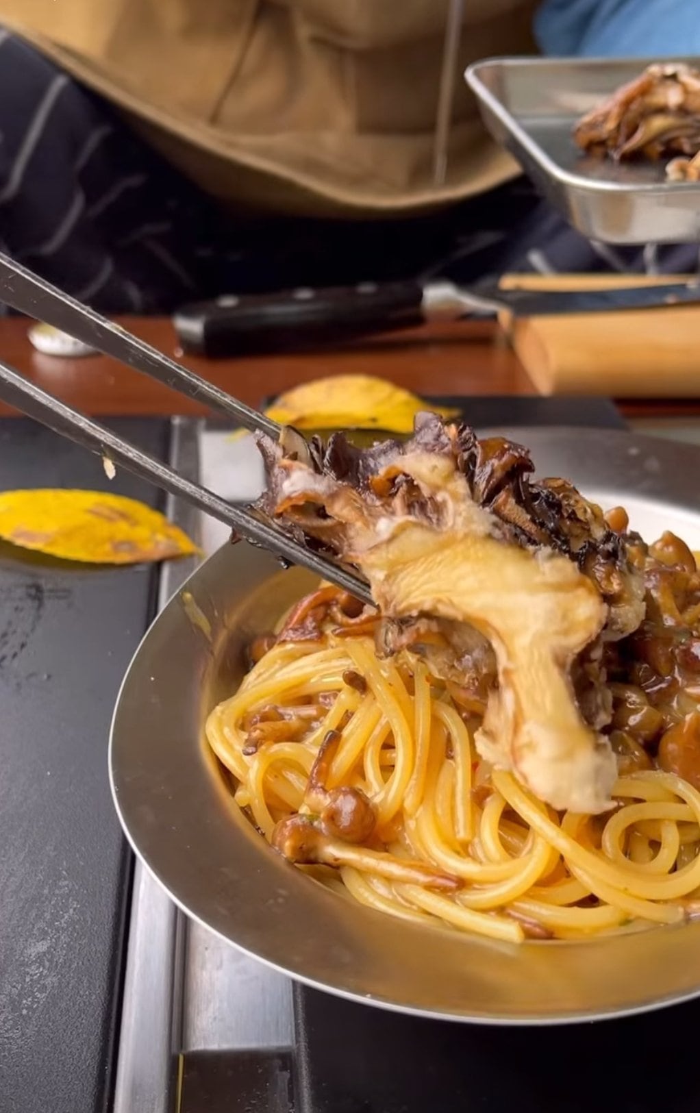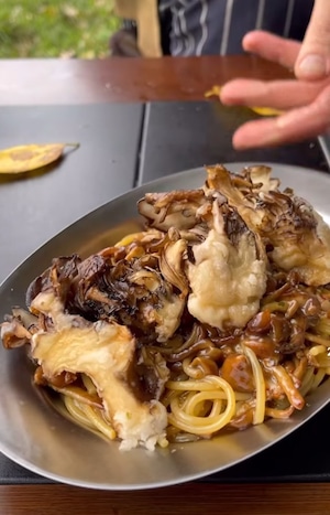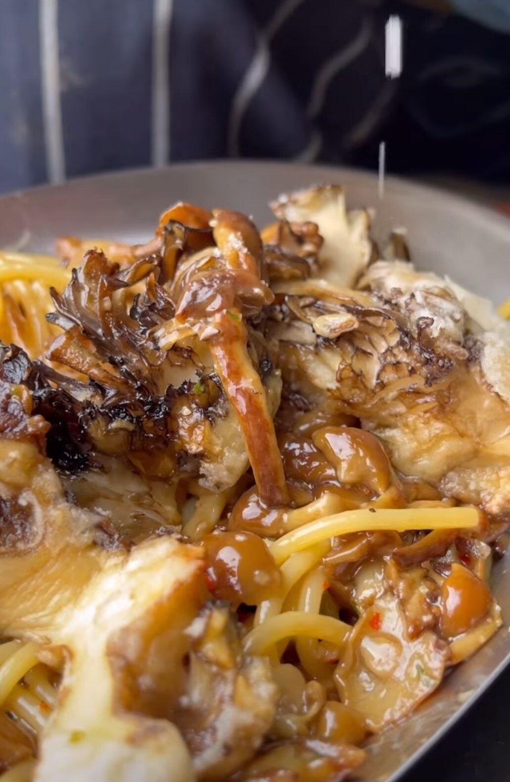 【濃縮したなめこ茸と舞茸フリットのペペロンチーノ】