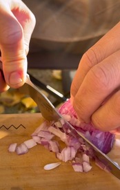 ※マッシュルーム、アーリーレッドを微塵切りにして、弱火で詰めてデュクセルを作っていく
