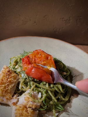 しっとりメカジキとローストトマトの大葉ジェノベーゼ