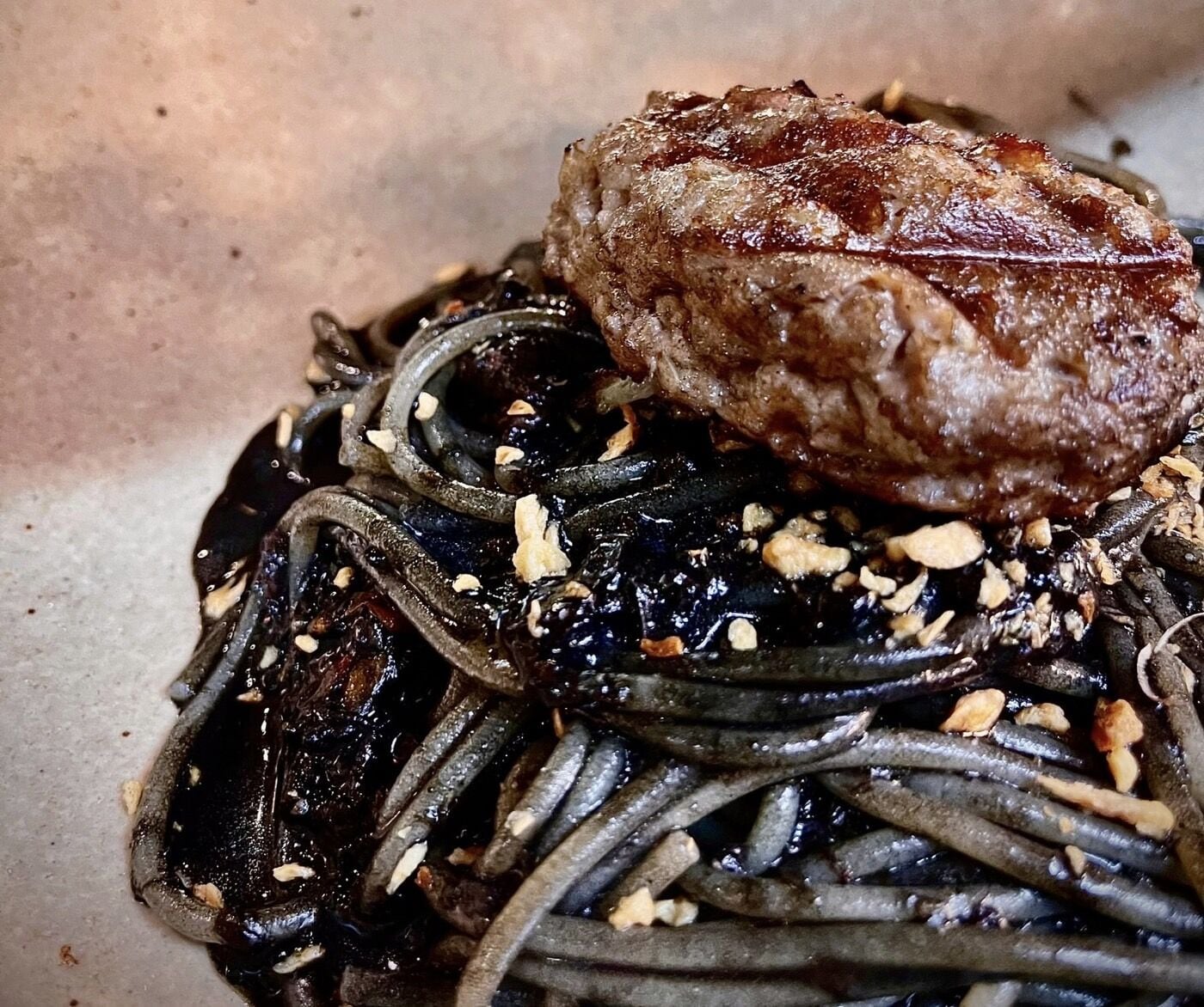 ・肉系イカ墨スパゲッティー