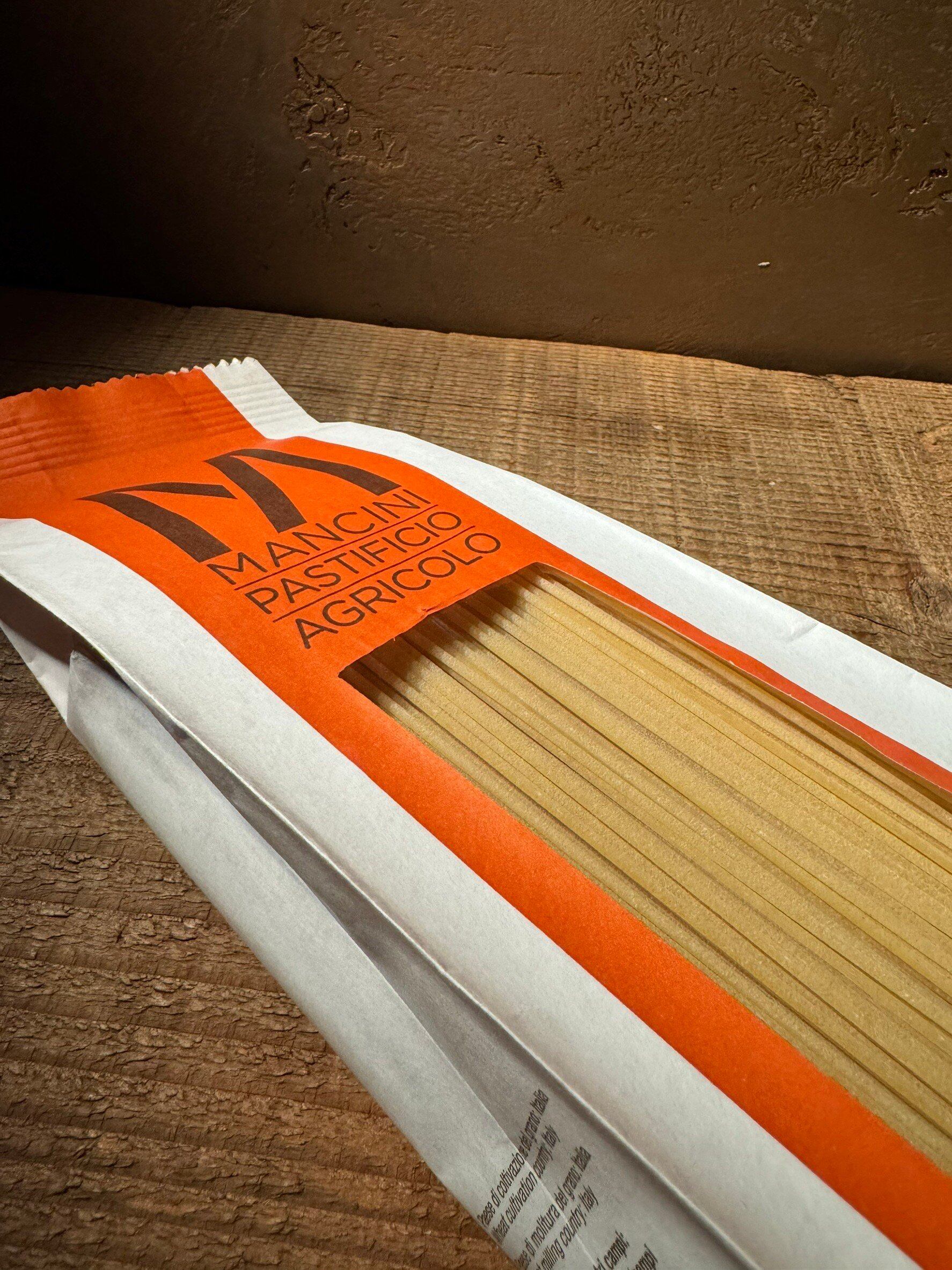 マルケ州モンテ・サンピエトランジェリに広がる小麦畑。マンチーニ社はその中心に工場を構え、自社栽培のマルケ州産小麦だけを使用しパスタを製造しています。オーナーであり代々小麦生産農家のマンチーニ家が、栄養豊富で風味豊かなパスタを作るために納得のいく小麦を自ら栽培し、研究と工夫を重ね、こだわりのパスタ「マンチーニ」を誕生させました。厳選された小麦の豊かな風味と栄養が封じ込められたそのパスタは多くの人を魅了し、星付きレストランでも愛用されています。