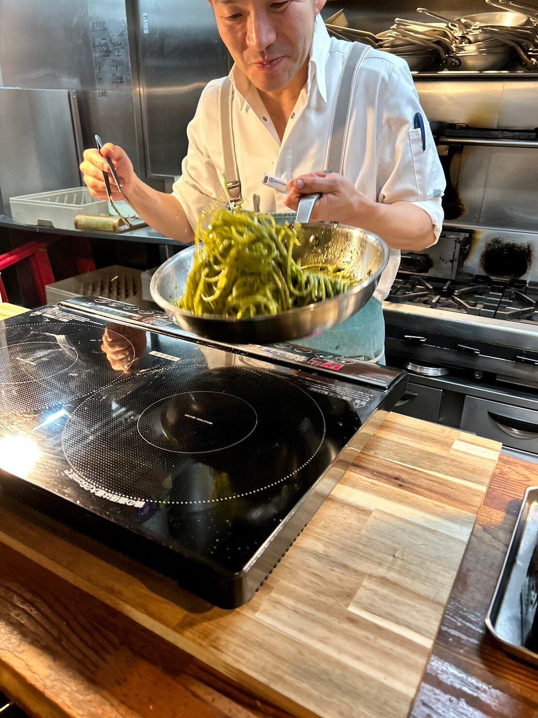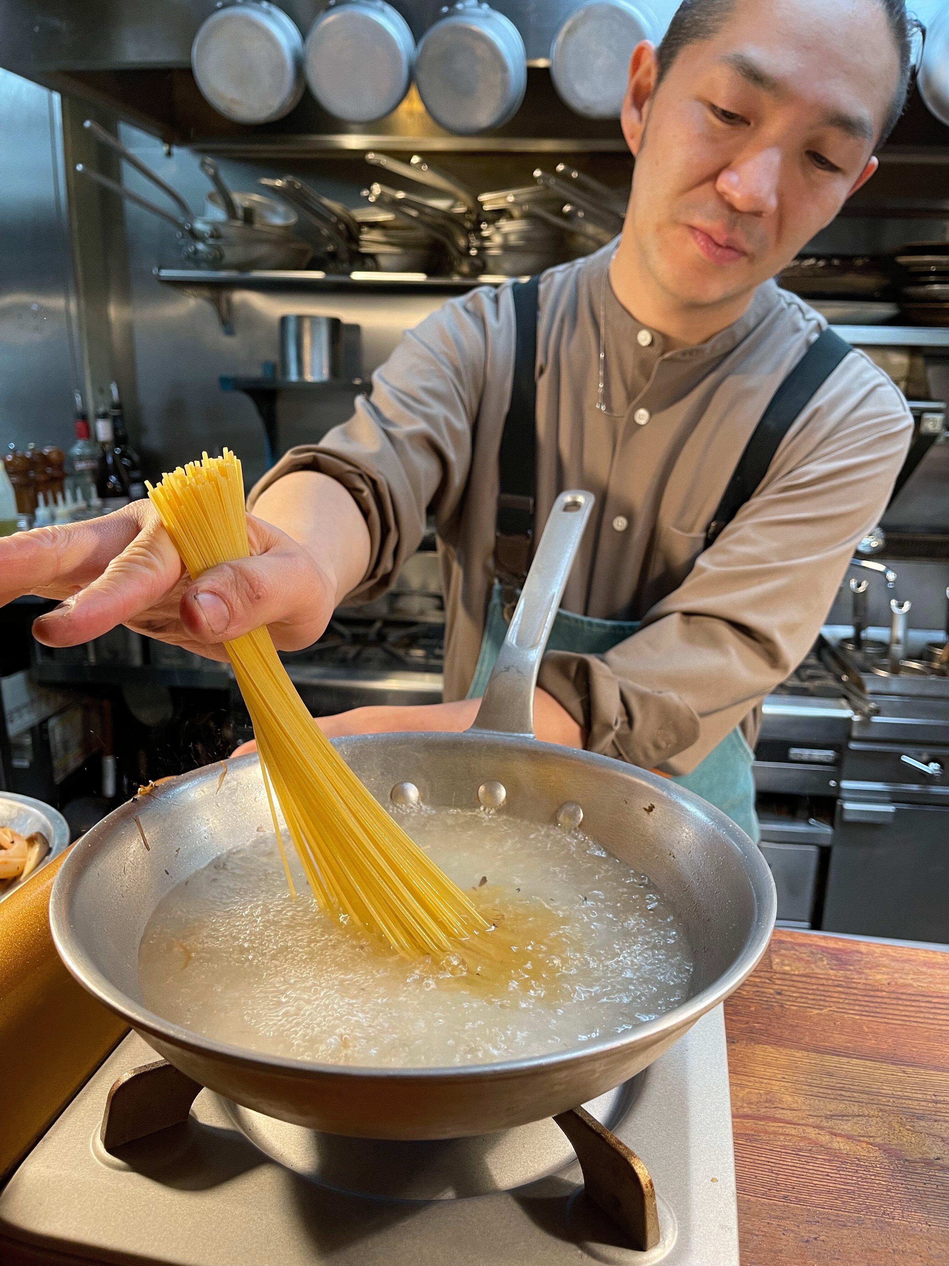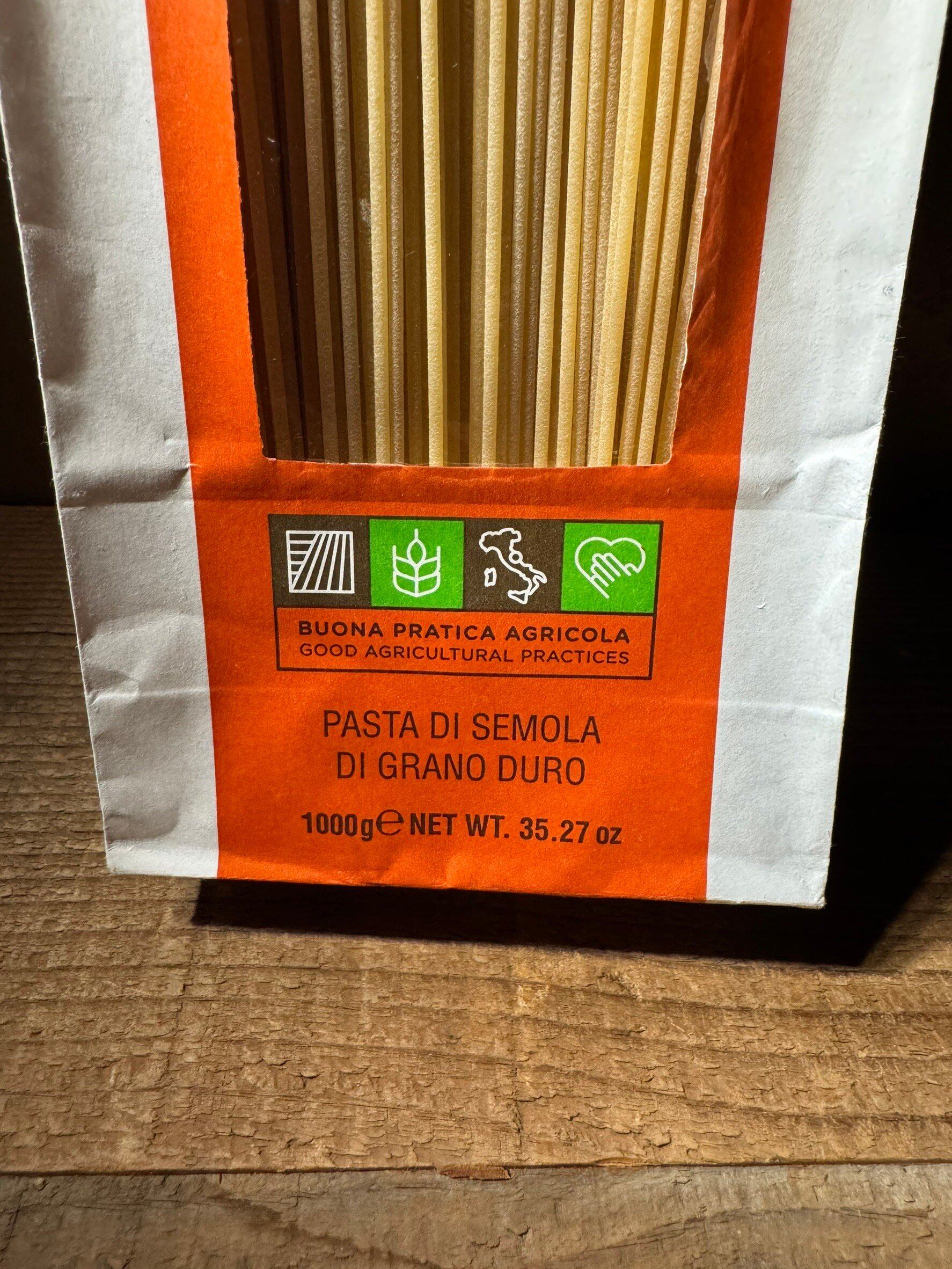 小麦の要素をそのままパスタに封じ込めるため、成型から乾燥時においてもこだわりの手法が用いられます。太さが特徴的なロングパスタは、その太さによって味と食感が安定し、香り高いパスタへと仕上がります。そしてブロンズダイスを通って成型された後、乾燥温度を約45℃におさえ約40時間かけた「低温長時間乾燥」で製造されていきます。口にした瞬間広がる小麦の味と香り、そして食べ応えのあるモチモチした食感のあるパスタです。
