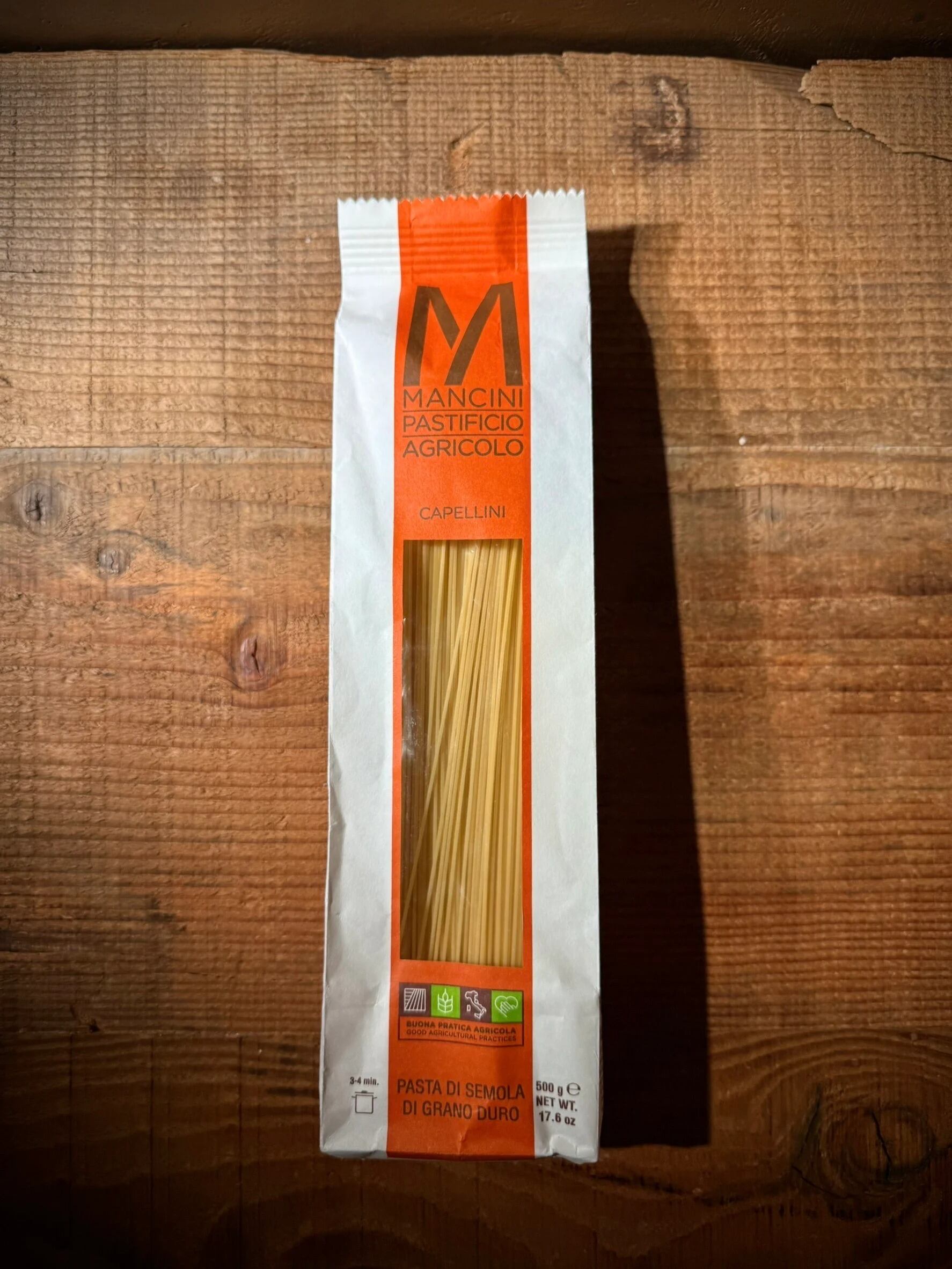 マルケ州モンテ・サンピエトランジェリに広がる小麦畑。マンチーニ社はその中心に工場を構え、自社栽培のマルケ州産小麦だけを使用しパスタを製造しています。オーナーであり代々小麦生産農家のマンチーニ家が、栄養豊富で風味豊かなパスタを作るために納得のいく小麦を自ら栽培し、研究と工夫を重ね、こだわりのパスタ「マンチーニ」を誕生させました。厳選された小麦の豊かな風味と栄養が封じ込められたそのパスタは多くの人を魅了し、星付きレストランでも愛用されています。