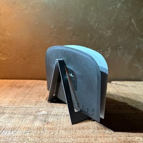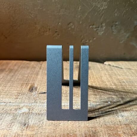 このドレッジホルダーは食洗機対応です。なので頻繁に洗っていただくことを想定しています。その中で時間の経過とともに自分のお気に入りの道具にどんどんなっていくような、存在になってほしいという思いから、今回の風合いは「ヴィンテージ風」の艶消しステンレス加工を採用しています。ジーンズで言うとストーンウォッシュ加工に似た技術で、ステンレスの場合は「バレル仕上げ」と言われる加工をしています。研磨石、コンパウンドなどを入れて回転や振動を加え、摩擦で表面を研磨する加工方法です。時間の経過とともに、変化する風合いをお楽しみください。
