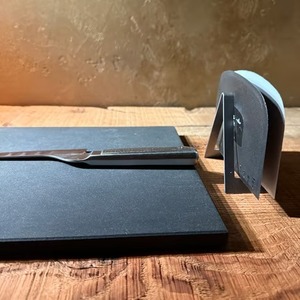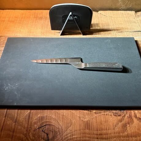 ドレッジ(スケッパー)って意外と置く場所に困りませんか?ドレッジ自体はもう持っている方も多いと思います。でも意外と使っていないことが多いんじゃないか?とも思っています。それは何故か?と考えたときに「置く場所」が定まっていないことが原因だと思っています。まな板に置くのは場所を取るし、作業台に直接置くのは衛生的に問題がある。それで結果として作業している場所よりも、遠い場所に配置していたり、引き出しの中にしまっていたりするので、材料を切った後の食材の移動も結局包丁でやってしまう。自分自身それを感じていたので、好きな場所における「専用のホルダー」があればいいのになと思って探しました。でもどれだけ探しても専用のものがなかったので、創ることにしました。なので、業開発のドレッジ専用ホルダーです。ドレッジはこの「置き場所問題」が解決されたら、もっと多くの方に普及される調理道具だと思っています。このドレッジホルダーがある事で、お家でもプロの現場でも「切り物」の作業時の常識が変わり、料理がもっと楽しくなるように開発しました。